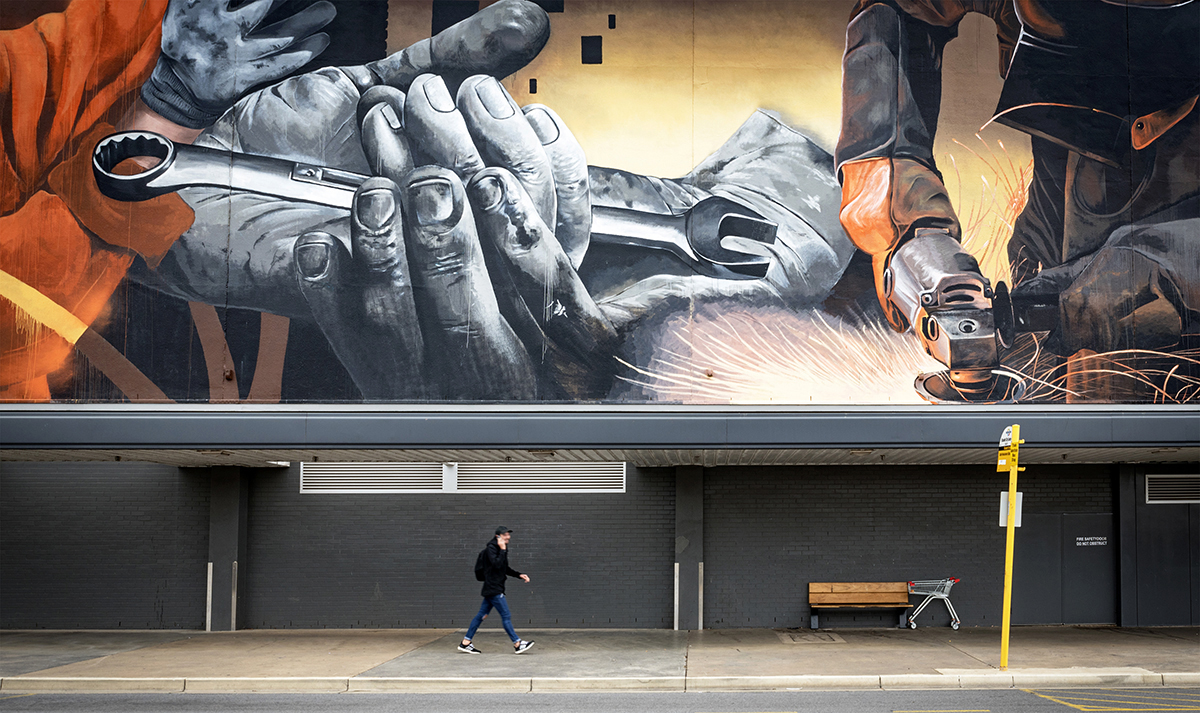 Sam Brooks is an Adelaide Based mural artist working in large scale, realistic murals. The content of Sam's work focuses on telling historically significant and culturally meaningful stories about people, culture, history and human connection.