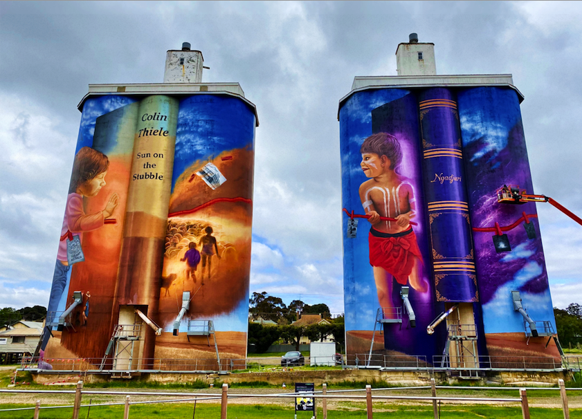 In the pursuit of rich stories and cultural impact, many of Sam's works can be found in the internationally recognised silo art trail, featured on the front page of South Australia's art guide, and found all across Australia. From silos in Eudunda, water towers in Wagga Wagga, walls in Gulargambone and mining towns in Roxby Downs. Sam is always looking for interesting characters and rich gems of history that are waiting to be given a platform for the public to enjoy and uncover.